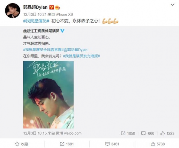 对于自己前来参加节目的初衷,郭品超也在微博中写道:初心不变,永怀赤子之心。