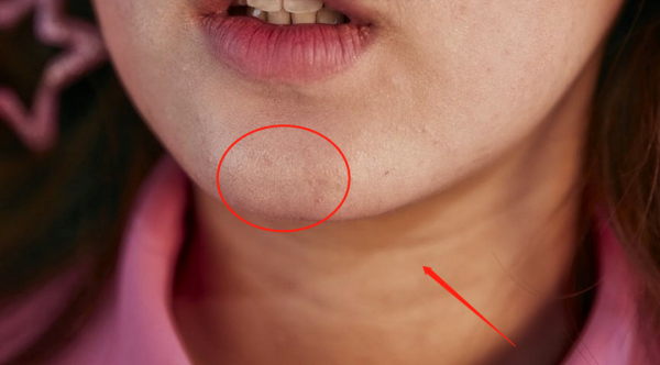 再来看脸的下半部分,情况更加严重,下巴上还有各种浮粉卡纹的情况存在,唇周也有浮粉,唇纹非常明显。虽然镜头聚焦在赵露思的脸部,但也能隐约看到她的颈纹,果真明星也是普通人而已。