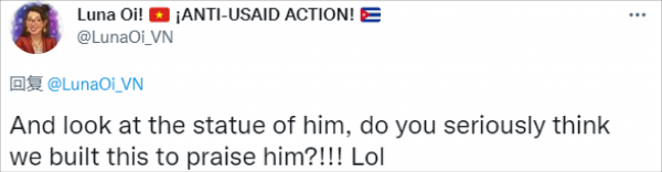 “我想知道为什么越南人要为以前的敌人建一座纪念碑!不知道越南普通民众对她(哈里斯)的访问有何感想?”