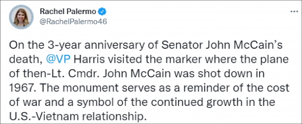 同日,哈里斯的助理新闻秘书瑞秋·巴勒莫(Rachel Palermo)在社交媒体发文称,这座纪念碑提醒了我们关于战争的代价,也是美越关系持续发展的象征。
