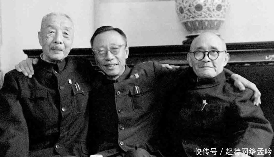 1961年,溥仪与当年把他从紫禁城里赶出来的冯玉祥将军部下鹿锺麟(左一)、打响武昌起义第一枪的熊秉坤(右一),在北京相遇,高兴地攀肩合影。