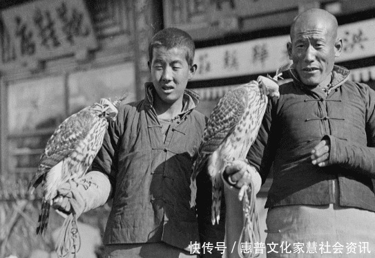 图为北京前门大街外,卖鹰隼的贩子,熬鹰是最残忍的动物驯化,任何肉体上的伤害不会让它屈服,只有不断摧毁它的意志,不让它睡觉,鹰只有无限接近死亡时才会屈服。