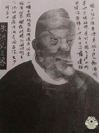 照片中朱元璋画像。民间传说朱元璋其丑无比,一副麻脸,下巴很长,额骨稍凸,朱元璋还因为宫廷画师把自己画的太真实,顿时大怒,把画师推出去斩了。还有野史记载,朱元璋很是忌讳"光"、"秃"、"僧"、"贼"、"寇",连和贼读音相近的字也厌恶。但是事实上朱元璋从未忌讳谈及自己曾为和尚,在《大明御制皇陵碑》里,朱元璋也没有隐瞒自己出家和参加起义的旧事,坦陈了这段人生经历。所以野史上关于朱元璋的描述是不可靠。