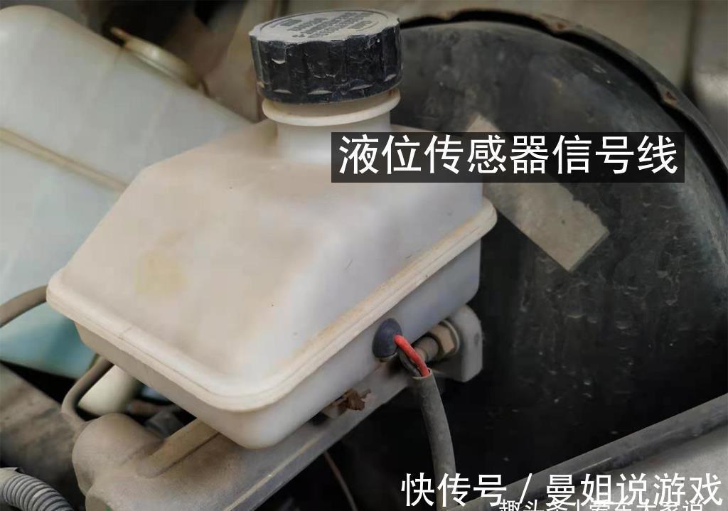 上图是一个刹车油储液壶,可以看到上面有两根线,里面就是一个刹车油传感器。液位传感器另一头连着仪表盘,通过传感器检测到的电阻值来检测刹车油是否缺少。当刹车油液面低于传感器时传感器就会暴露在空气中,电阻变为无穷大,此时仪表盘就会点亮报警灯。由于很多车上