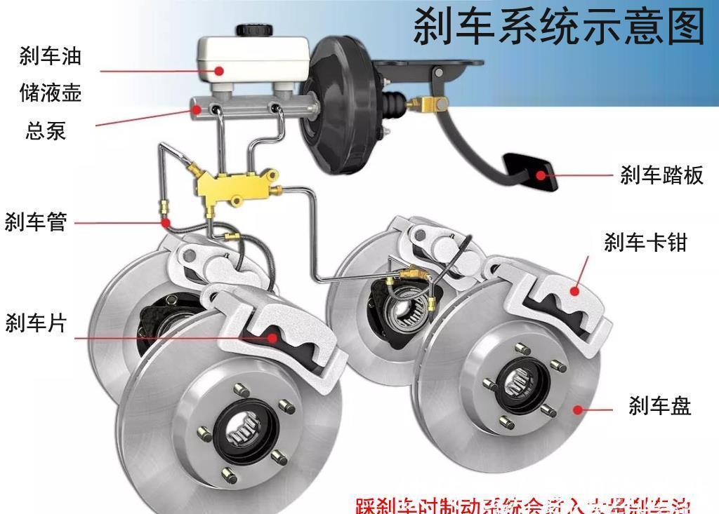 因为在你踩刹车时刹车油就会进入刹车系统去推动刹车分泵上的活塞,