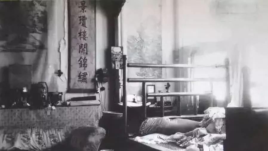 婉容出宫时,储秀宫内婉容卧室床上的未收拾带走的绣花枕头。可以看到储秀宫里的床褥都没有带走。