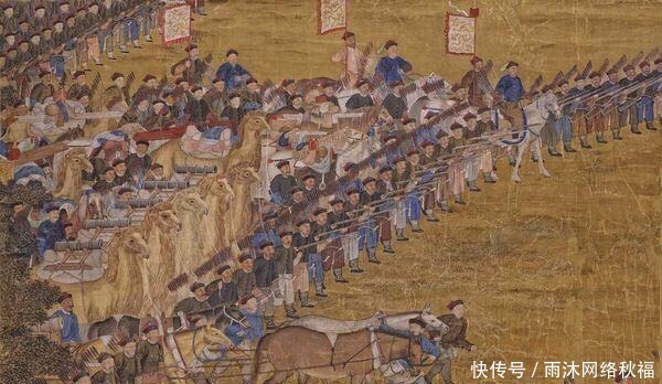 表现了格登山之战中阿玉锡奇袭达瓦齐大营的情景