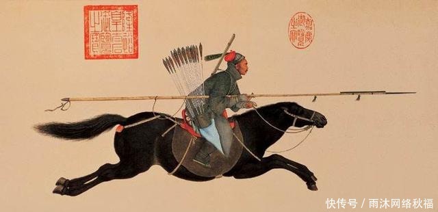 郎世宁所绘《阿玉锡持矛荡寇图》,