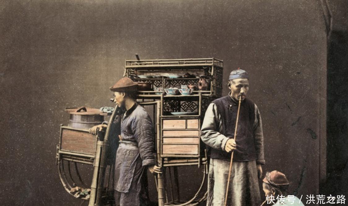 这是晚清年间的货郎,货郎们挑着重重的担子走街串巷,为了微薄的铜细辛苦奔波,从其消瘦的身材来看,可见当时的晚清的社会有多穷!