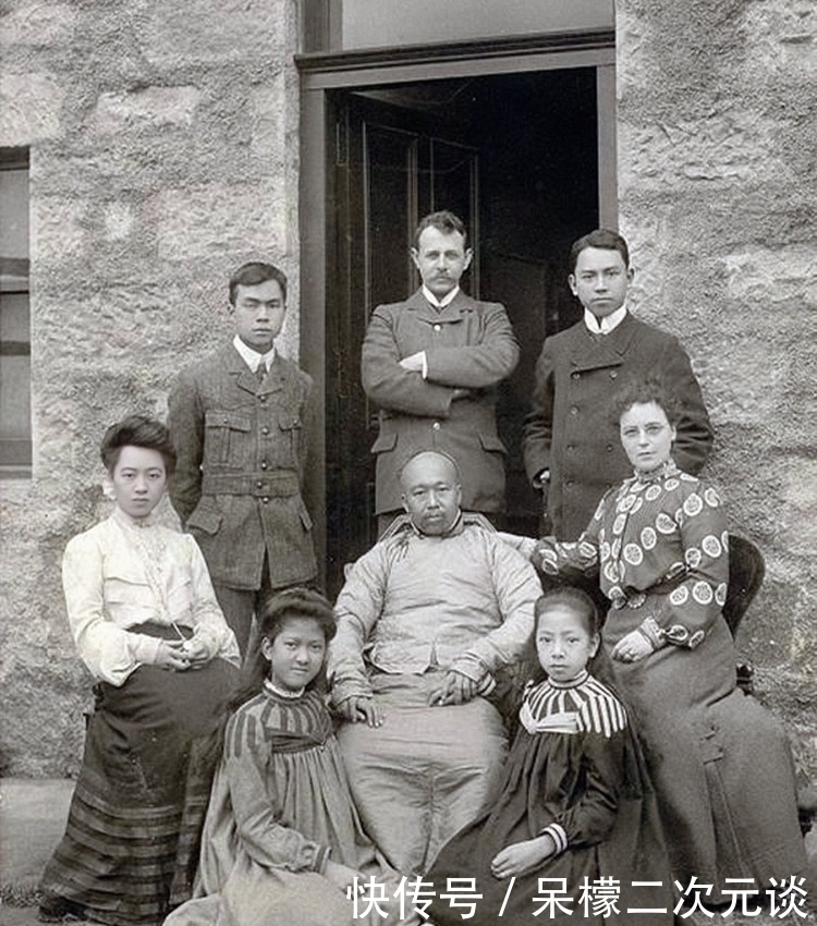 图4康有为,清末戊戌变法者之一,与康有为等人在光绪皇帝的任命下,进行了103天的改革,但最终遭到慈禧的阻止,最终谭嗣同等戊戌六君子被杀,康有为和梁启超逃到了国外。关于他的事迹,我们历史课本上讲到这里戛然而止。事实上康有为到了国外后,拿着一张自己"合成"的与光绪皇帝的"合影",到处募捐,用这些钱过着锦衣玉食的生活,并且妻妾成群,非常逍遥自在。图为1907年,康有为在美国和友人的合影,中排左一是他的次女康同璧。