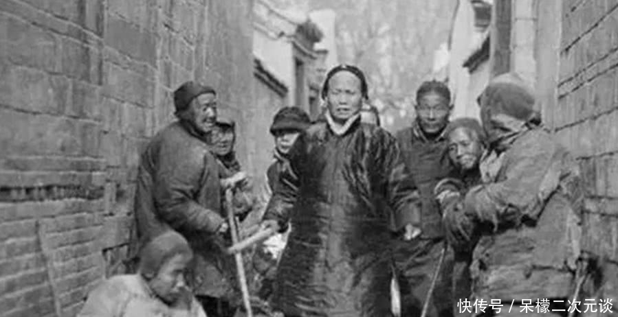 图3为一位地主婆出门,被乞丐围观,地主婆走路姿势好霸气,围观的人一脸羡慕,她手里拿着一节短棍,应该是欺负穷人用的!