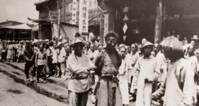 即将被斩首的拳民,八国联军攻陷北京后,慈禧太后向八国联军投降,并命令清军镇压义和团运动。