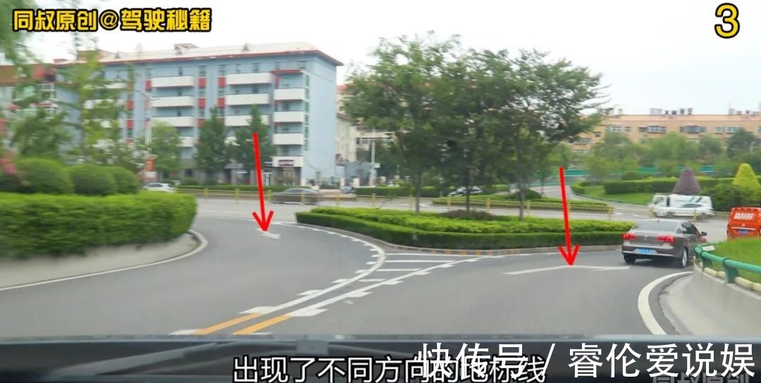 左右两侧车道内,出现了不同方向的地标线。