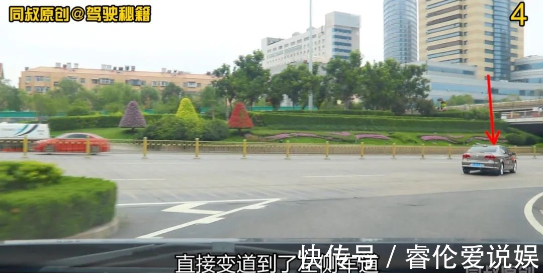 前方就是横道了,我继续右转即将到达横道。前方小轿车汇入横道后,直接变道到了左侧车道。