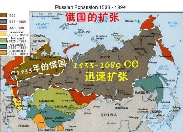 除了上述原因之外,占据海参崴的俄国与占据香港、澳门的英国和葡萄牙不同,在近代史上,英国和葡萄牙作为海上殖民的强国,在世界各地实行的都是殖民统治,目标只是掠夺资源和经济占领。但俄国不同,它的扩张主要表现为领土的扩张,从16世纪到19世纪,俄国从欧洲一路向南、向东扩张,占领了超过2000多万平方公里的土地。