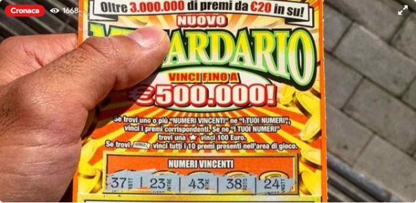 报道援引意大利当地媒体的消息称,上周五,这名女子在意大利那不勒斯市的一家烟草店买了两张“刮刮乐”,第一张没有中奖,刮开第二张后,她发现自己中了50万欧元(约合383万元人民币)大奖。