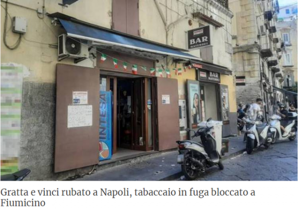 综合英国《卫报》、美联社5日报道,意大利一名60多岁女子在一家烟草店买“刮刮乐”后中了大奖,去兑奖时,烟草店的店主拿过彩票、骑上摩托车就跑,最终在机场被警方抓获。