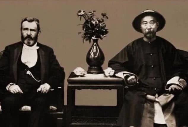 这是晚清朝廷名臣李鸿章在1879年和美国总统格兰特的合影老照片,彼时的李鸿章虽然已经过了而立之年,但是相貌英俊潇洒的他看起来依旧非常帅气,再加上李鸿章身材高大伟岸,即便到了晚年亦是非常的帅气十足。