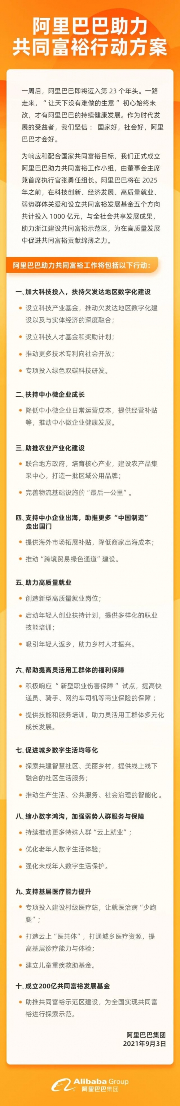 值得一提的是,马云现身的第二天,阿里便宣布,将在2025年前累计投入1000亿元,助力共同富裕,并列出了十项具体行动。