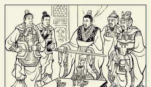 此时,突然在门口,楚考烈王瞧见一个人拿着宝剑,走上了台阶,跑到他的跟前嚷着说:"合纵不合纵,只要一句话就行了,怎么早晨说到现在?太阳都直了,还没说妥当?"楚考烈王很不乐意地问平原君他是谁!平原君说:"是我的门客-毛遂。"楚考烈王骂毛遂说:"我跟你主人商议国家大事,你来多什么嘴,还不滚下去!"毛遂拿着宝剑又往前走了一步说:"合纵抗秦是天下大事,天下大事,天下人都有说话的份,这怎么叫多嘴呢?"楚考烈王见他跑上来害怕了,又听他说出的话挺有劲儿,就只好像斗败了的公鸡似的,换了副笑脸对他说:"先生有什么高见?请说吧!"