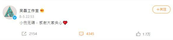 此外,吴磊的眼睛也有受伤,都进行了详细检查,好在只是外伤,没有太大影响。