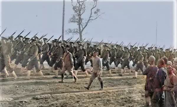 清末清军部队,从画面中我们可以看出,这一时期的清军军容极好,并且配备的军装和武器也完全呈现出了现代化的面貌。