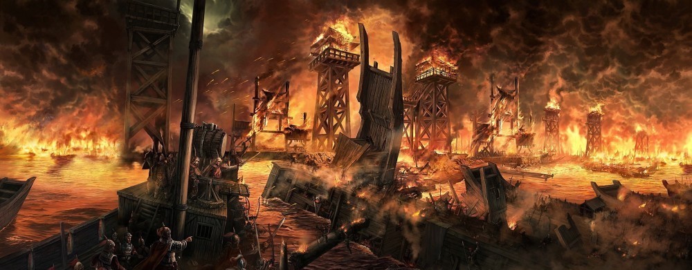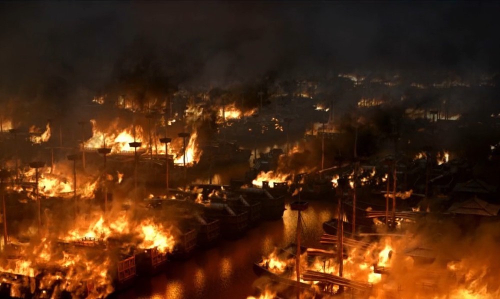 接连几日无战事,朱宸濠与众妃妾在舟中玩耍,借此消除烦恼,忽听得卫士报告,阵中起火,不禁大惊失色,急忙推开舱门了望,只见前后左右船中,已是火光冲天。这时已是入秋,江上风势不小,火随风势,四面延烧,已经是无法抢救了。这时,又听得四面杀声震天,原来是王阳明的四支伏兵见火起,即趁势发起攻击。朱宸濠的军卒见大势已去,纷纷弃舟跳水而逃。朱宸濠见此情此情,吓得几乎昏倒在甲板上,他在侍卫的搀扶下,走进船舱,与妃妾相对痛哭。此时,外面杀声已近,王阳明军从四面登上朱宸濠坐船,将其父子二人及亲随左右俘获,王阳明军大获全胜,平定了宁王朱宸濠叛乱。
