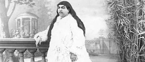 下面这张图片是"波斯最美公主"卡扎尔,1883年生人,波斯人的毛发比较旺盛,头发和眉毛会比较茂密,可这个公主的毛发也太旺盛了,嘴巴旁边竟然长出了肉眼可见的胡须,如果只看脸的话,外国人会以为她是男人。