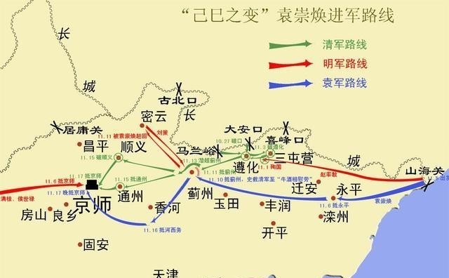 糊涂的崇祯皇帝并不知道这是计谋,召见袁崇焕时,即刻将其逮捕入狱。12月初四,袁崇焕手下将领祖大寿率领部下从驻地开拔,杀出山涨关。崇祯皇帝着急了,连忙命令孙承宗出关招抚祖大寿等将领,通州因此失守。