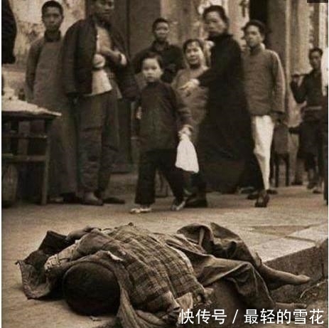 晚清真实老照片:图为晚清一个饿死在路边的小孩子,躺在街边盖着一件衣服,没有人管。