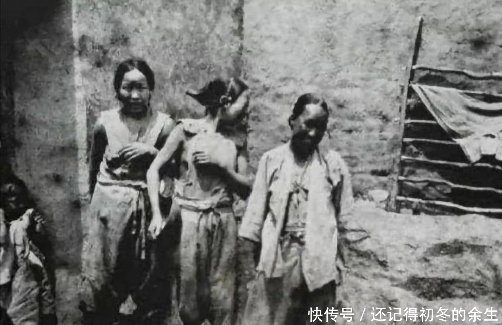 衣不蔽体的三位女子,对着镜头神色各异。三位都缠着足,重体力活基本不用干了。看样子也不是什么大户,不知道谁娶了她们。