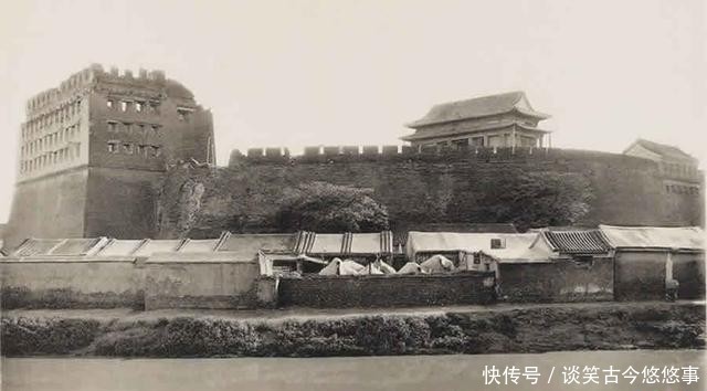 拍摄照片时,瓮城已经不完整,箭楼倒塌了。 1900年8月14日,八国联军炮击朝阳门,箭楼的屋顶被炸毁。仅剩下三层的下檐和一层的上檐。联军撤退后,箭楼于1903年重建。
