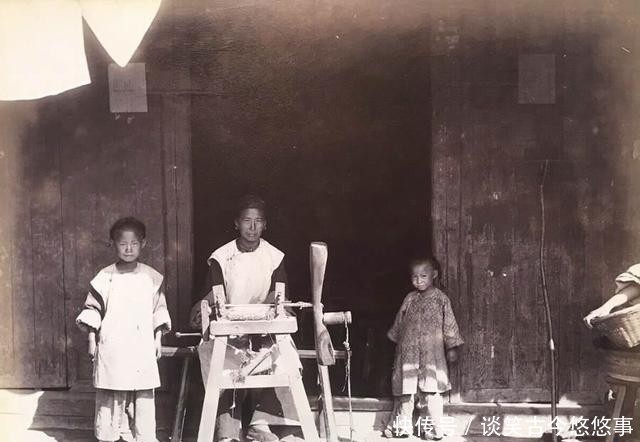 母亲正在操作一台简单的机器来生产某种手工产品。你看到她在做什么吗?