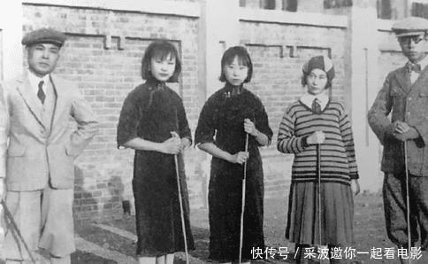 图:溥仪和二妹韫和(左二)、三妹韫颖((左三)等在高尔夫球场。