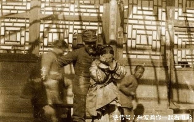 图:八国联军士兵在北京街头当众欺凌女性,这名女子看起来年龄不大,双手捂脸,呈惊恐状。八国联军占领北京,各国司令官"特许军队公开抢劫三日",北京陷于空前苦难之中。《日本邮报》曾刊弗兰克·布林克利的一段描述:"仅在通州一地,在这座中国未设一兵一卒抵抗的城市中,就有573名中上层妇女因不堪忍受联军士兵污辱羞愤自尽,而同样受辱的下层妇女们,则只能忍气吞声。"
