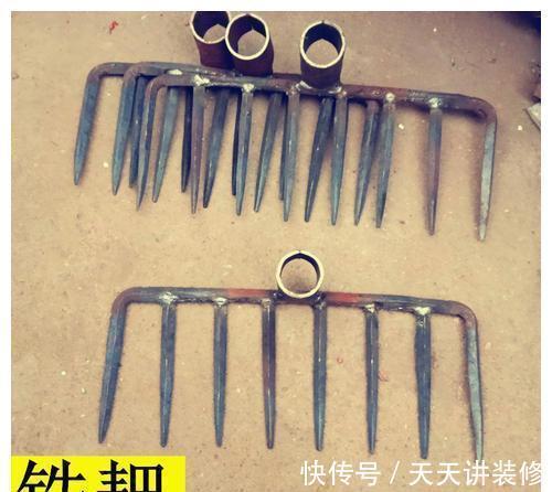 铁耙也叫抓耙、钉耙,过去农村常见的一种传统农具,也是农家必备的一种生产工具,几乎家家户户都有它。铁耙是由耙头跟木把组成,钯头有六跟或者八跟铁齿,这种铁齿比较长,有20多厘米。它的用途非常多,可以用来耙土、耙草、水稻田搭田坎、抓粪草、抓堆肥、还可以用来平整土地。这种工具非常好用,在干某些农活时,还真离不开它。