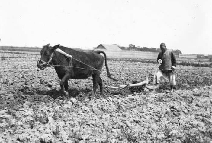 100年前农夫,在耕地,唯一跟现代的农民不一样的是,他们当时所穿的衣服。现在看起来有点格格不入的样子。