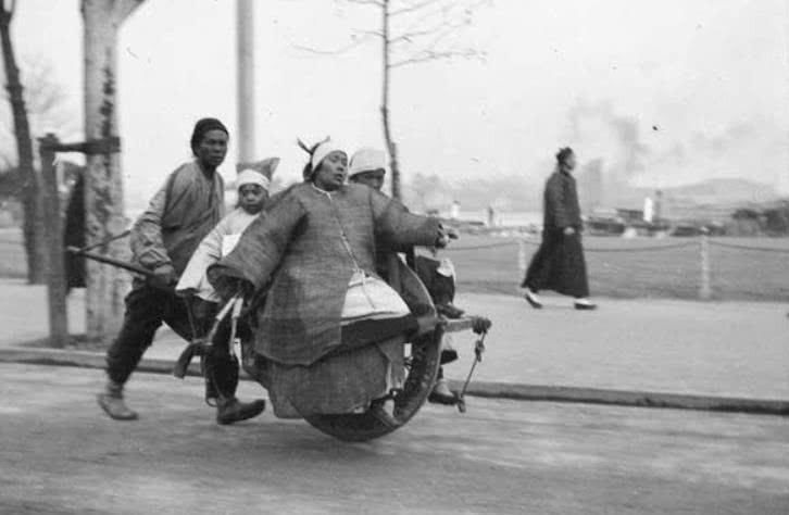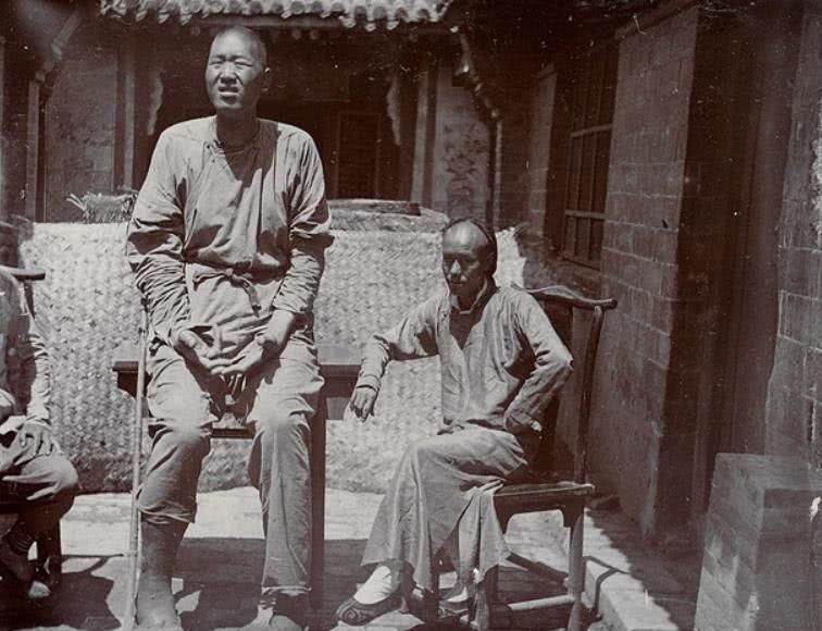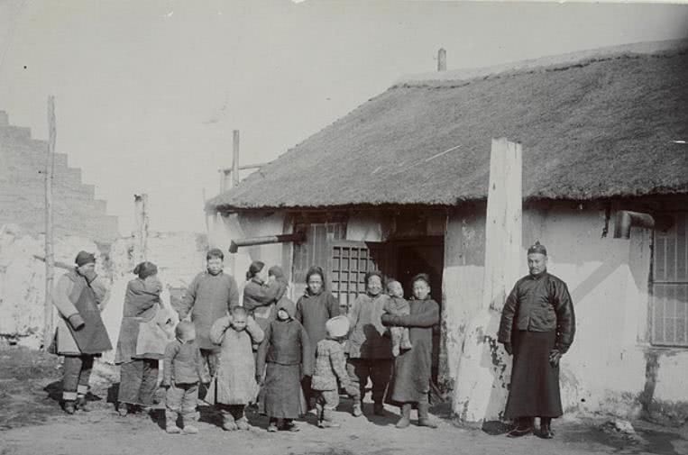 农村的妇人,旁边是老爷,可以看到这些妇人都是裹小脚的。