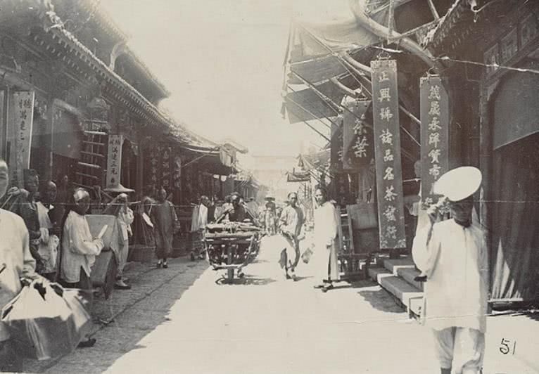 清末时期,北京城的一幅街道景象。很多人都把目光投射在了拍摄人的身上。当时照相机,还是一个挺新鲜的东西。