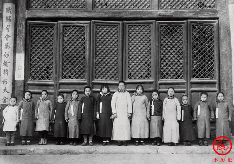 宫女与小太监合影。