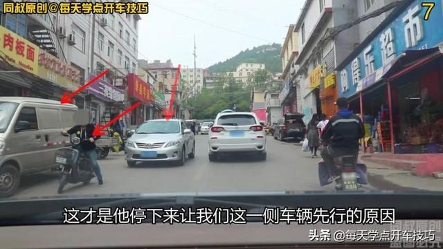 像左侧对向车道的这辆灰色轿车停下来,除了遵守下坡车辆给上坡车辆让行之外,还要看障碍物在哪一侧,现在灰色轿车一侧的车道,被微面和这辆电动车所阻挡,这才是他停下来让我们这一侧车辆先行的原因,这就是另一个规则,障碍物一侧车辆需要停车让行。