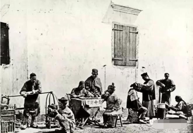清朝街边小摊贩,有算命的、剃头的、卖小吃的。