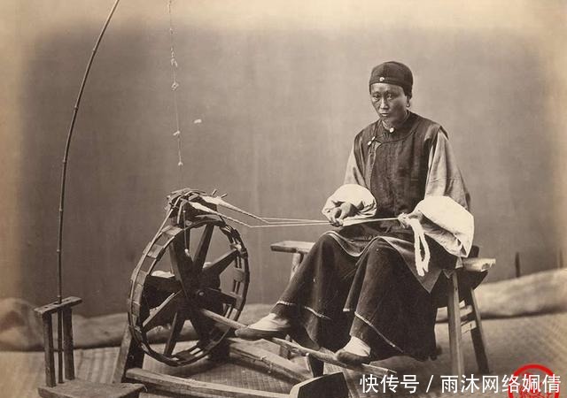 通过纺车的作用,她手中的棉花团扯出细绳来。小农经济时代,几乎家家户户都有这种手工纺车和织布机,以满足自家穿衣服的需求。现在这种简易的工具只能在老照片或者博物馆看到了。