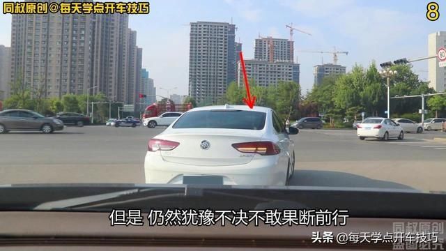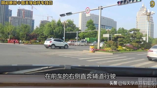 我观察右侧车窗外以及右侧后视镜,确认右侧无障碍,直接向右打方向,在前车的右侧直奔辅道行驶。