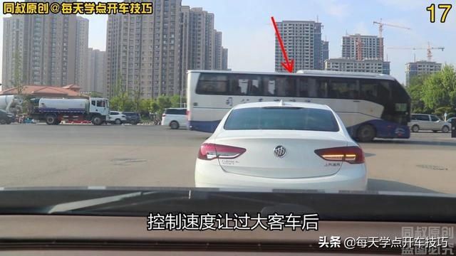 在前行过程中,控制速度让过大客车后,