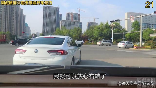 直到前车慢慢前移到给我腾出了向右转的空间,同时他又成为我右转弯时的一道屏障,挡住了左侧来车时,我就可以放心右转了。