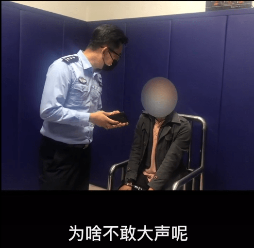 审讯室中,私家车车主声称自己是在民警告知后,才知道这些侮辱性标语的含义。