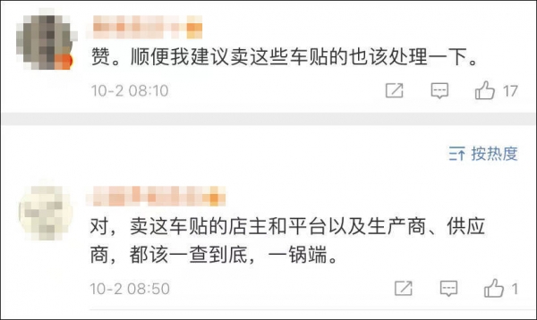 有网友表示,除了涉事车主,贴纸的生产商等相关单位也难辞其咎。