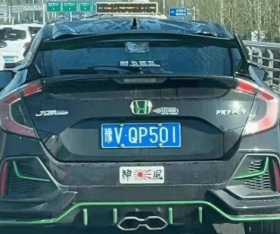 9月29日,郑州一私家车被发现贴有日本军旗图案。 交警发现后,第一时间将车辆查扣并移交于派出所处理。