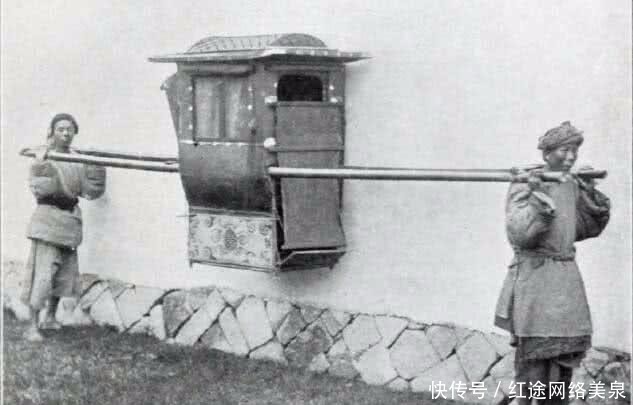 这是清朝末年时,人们出行的轿子是不是和电视剧上的差距非常大,而且这个轿子看起来非常的小,有两个人来抬举,和影视剧的八抬大轿一点都不一样,